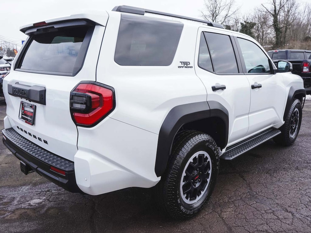 2025 Toyota 4Runner TRD Off-Road Recent Arrival! CLEAN CARFAX, ONE OWNER, BLUE TOOTH, NEW PA STATE INSPECTION, FULLY RECONDITIONED, NAVIGATION, ALLOY WHEELS, NON-SMOKER, BACK UP CAMERA, 4Runner TRD Off-Road, 4D Sport Utility, 2.4L 4-Cylinder, 8-Speed Automatic, 4WD, Ice Cap, Black/Boulder w/Fabric Seat Trim, 4-Wheel Disc Brakes, 8 Speakers, ABS brakes, AM/FM radio: SiriusXM, Anti-whiplash front head restraints, Apple CarPlay/Android Auto, Auto High-beam Headlights, Automatic temperature control, Brake assist, Cruise control, Dual front impact airbags, Dual front side impact airbags, Electronic Stability Control, Exterior Parking Camera Rear, Front dual zone A/C, Front fog lights, Front wheel independent suspension, Heated door mirrors, Heated Front Bucket Seats, Illuminated entry, Knee airbag, Leather Shift Knob, Leather steering wheel, Low tire pressure warning, Occupant sensing airbag, Overhead airbag, Panic alarm, Power door mirrors, Radio: 8" Audio, Rear side impact airbag, Rear window defroster, Rear window wiper, Remote keyless entry, Security system, Telescoping steering wheel, Tilt steering wheel, Traction control, Wheels: 18" Matte-Black Painted. Odometer is 1745 miles below market average!
