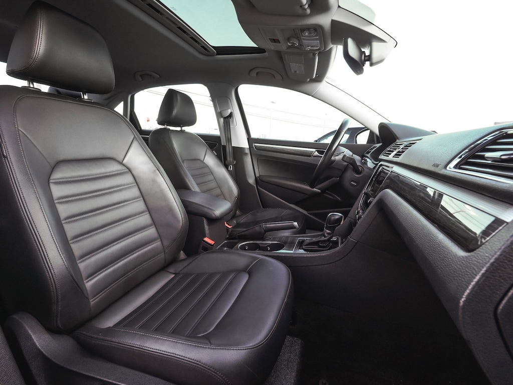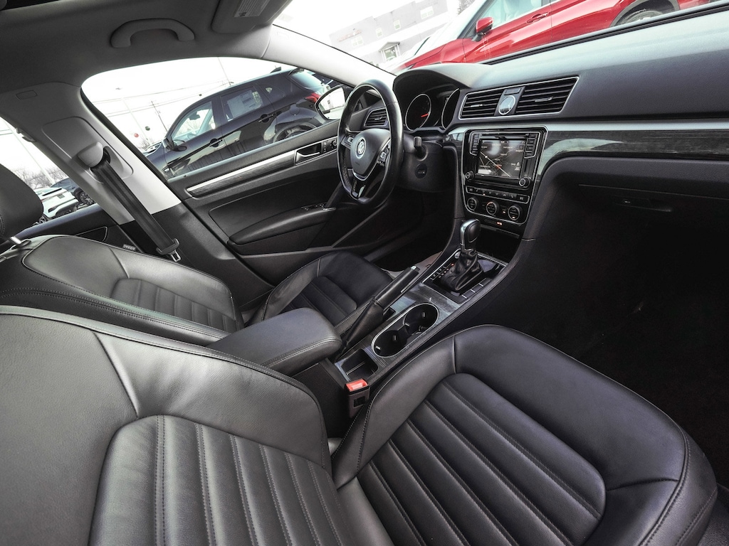 2017 Volkswagen Passat SEL Premium BLUE TOOTH, NEW PA STATE INSPECTION, FULLY RECONDITIONED, NAVIGATION, ALLOY WHEELS, SUNROOF/MOONROOF, LEATHER, BACK UP CAMERA, Passat SEL Premium, 4D Sedan, 1.8L TSI, 6-Speed Automatic with Tiptronic, FWD, Deep Black Pearl, Titan Black w/Vienna Leather Seating Surfaces, 4-Wheel Disc Brakes, 9 Speakers, ABS brakes, AM/FM radio: SiriusXM, Auto-dimming Rear-View mirror, Automatic temperature control, Brake assist, Cruise control, Dual front impact airbags, Dual front side impact airbags, Electronic Stability Control, Exterior Parking Camera Rear, Four wheel independent suspension, Front dual zone A/C, Front fog lights, Fully automatic headlights, Garage door transmitter: HomeLink, Heated door mirrors, Heated Front Bucket Seats, Heated rear seats, Illuminated entry, Leather Shift Knob, Leather steering wheel, Low tire pressure warning, Memory seat, Navigation System, Occupant sensing airbag, Overhead airbag, Panic alarm, Power door mirrors, Power driver seat, Power moonroof, Power passenger seat, Radio: Discover Media AM/FM/CD/HD w/Navigation, Rain sensing wipers, Rear window defroster, Remote keyless entry, Roadside Assistance Kit, Telescoping steering wheel, Tilt steering wheel, Traction control, Trunk Lid Lip Spoiler, Turn signal indicator mirrors, Vienna Leather Seating Surfaces, Wheels: 18" Chattanooga Alloy. 23/34 City/Highway MPG Odometer is 28163 miles below market average!