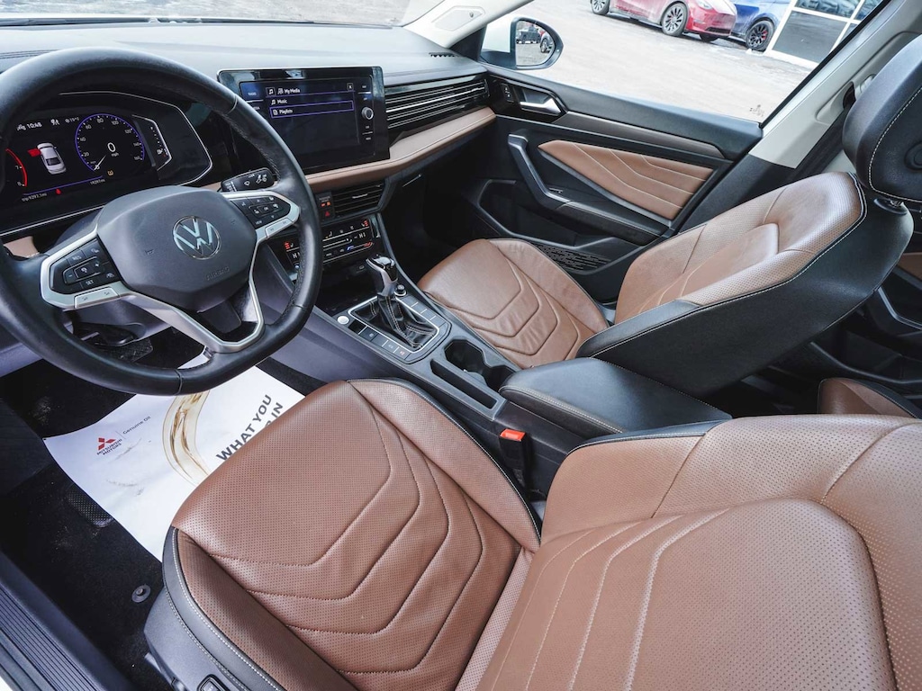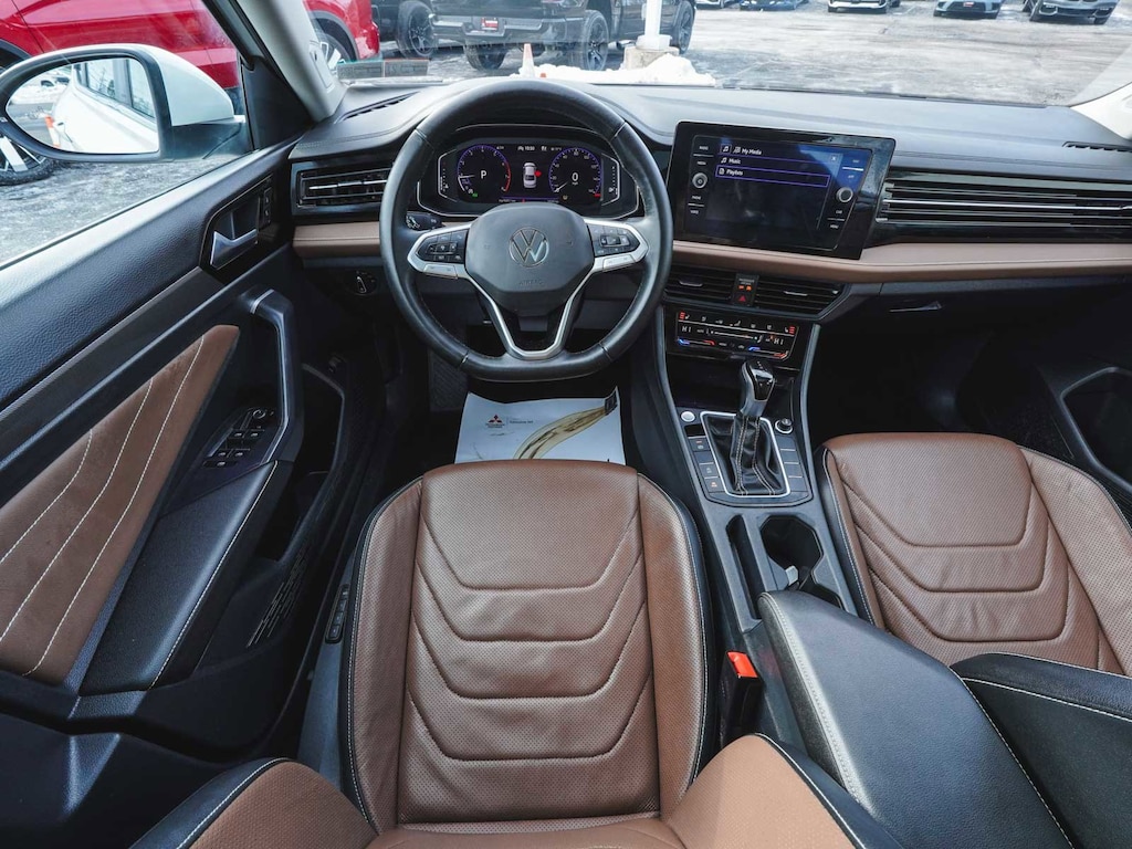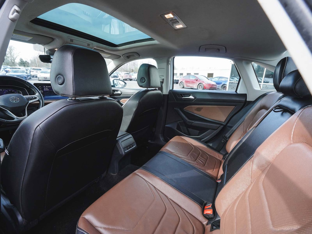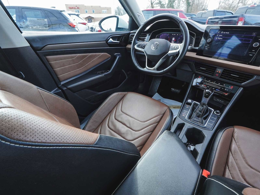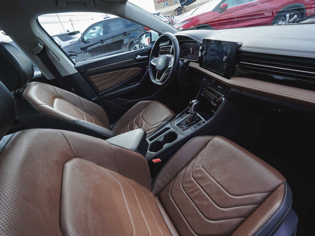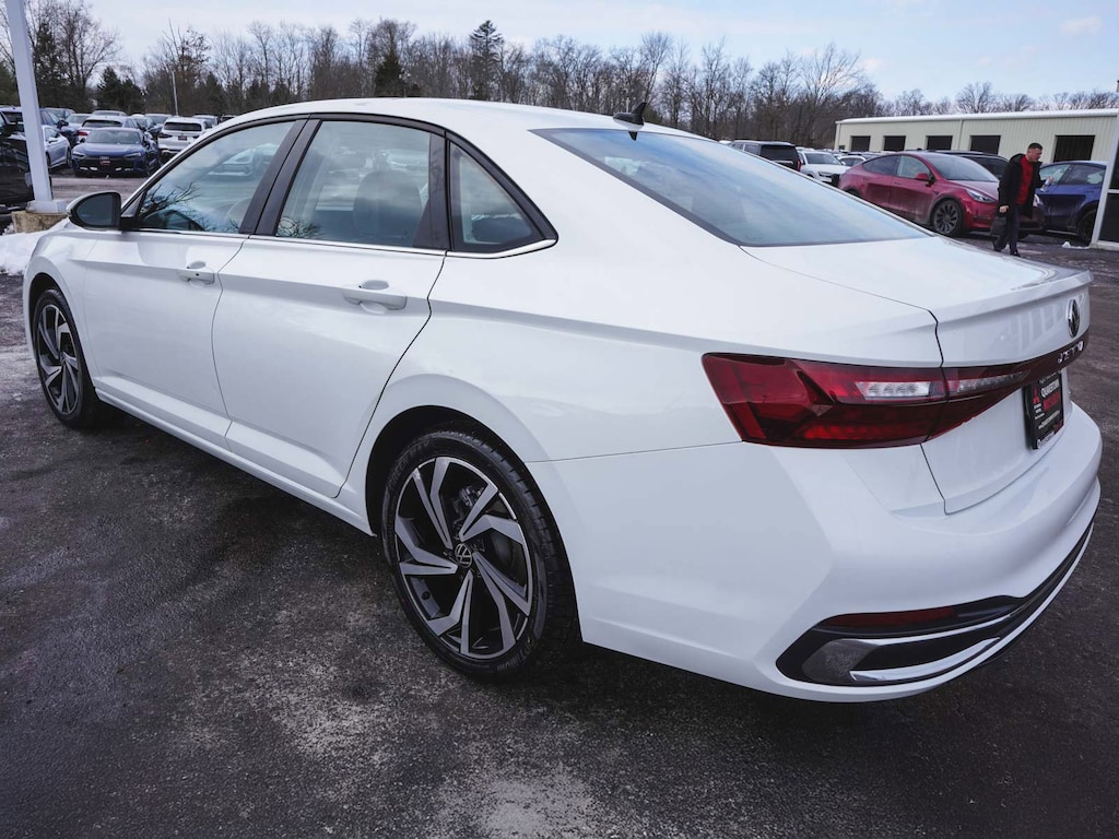 2025 Volkswagen Jetta 1.5T SEL CLEAN CARFAX, ONE OWNER, BLUE TOOTH, NEW PA STATE INSPECTION, FULLY RECONDITIONED, NAVIGATION, ALLOY WHEELS, NON-SMOKER, PANORAMIC SUNROOF, LEATHER, BACK UP CAMERA, Jetta 1.5T SEL, 4D Sedan, 1.5L I-4 DI DOHC Turbocharged, 8-Speed Automatic with Tiptronic, FWD, Opal White Pearl, Sevilla/Titan Black w/Vienna Leather Seat Trim, 4-Wheel Disc Brakes, 6 Speakers, ABS brakes, Active Blind Spot Monitor, AM/FM radio: SiriusXM with 360L, Auto High-beam Headlights, Auto-Dimming Rearview Mirror w/HomeLink Connect, Automatic temperature control, Black Trunk Lid Lip Spoiler, Brake assist, Bumperdillo Rear Bumper Protection Plate in Black, Cruise control, Dual front impact airbags, Dual front side impact airbags, Electronic Stability Control, Exterior Parking Camera Rear, Front Bucket Seats, Front dual zone A/C, Front wheel independent suspension, Fully automatic headlights, Heated & Actively Ventilated Front Seats, Heated door mirrors, Heated rear seats, Heated steering wheel, Illuminated entry, Leather Shift Knob, Leather steering wheel, Low tire pressure warning, Memory seat, Navigation System, Occupant sensing airbag, Overhead airbag, Panic alarm, Power door mirrors, Power driver seat, Power moonroof: Panoramic, Radio: MIB3 Discover Media w/8" Touchscreen Nav, Rain sensing wipers, Rear window defroster, Remote keyless entry, Security system, Telescoping steering wheel, Tilt steering wheel, Traction control, Turn signal indicator mirrors, Vienna Leather Seat Trim, Wheels: 18" 2-Tone Machined Alloy. 29/40 City/Highway MPG